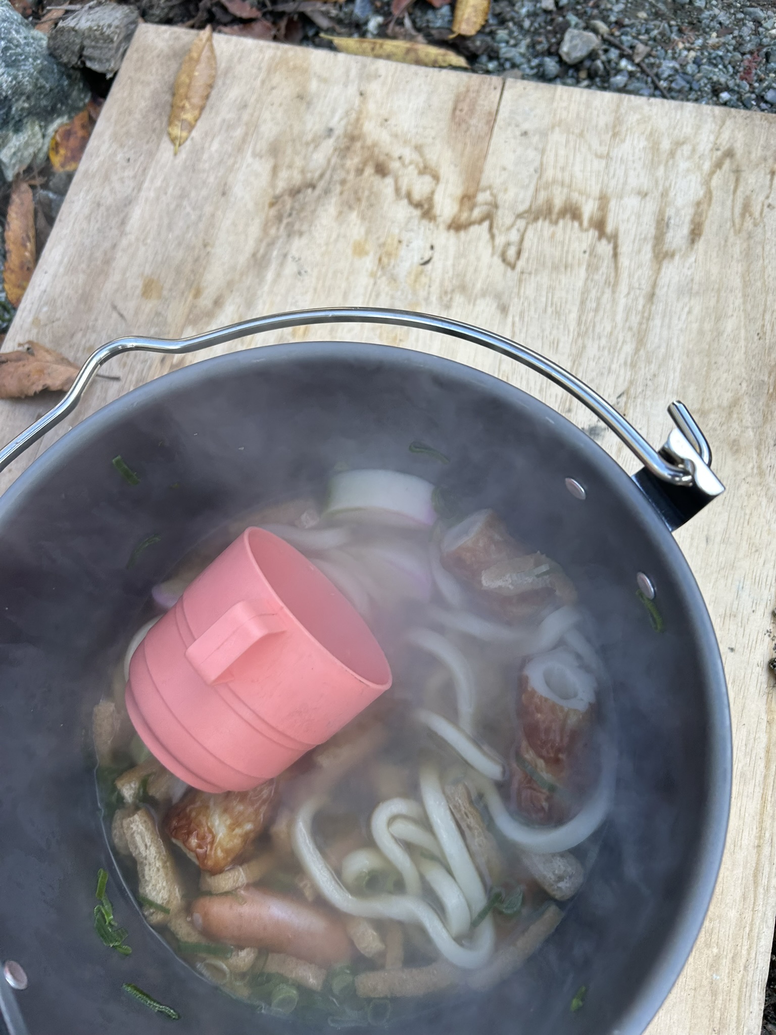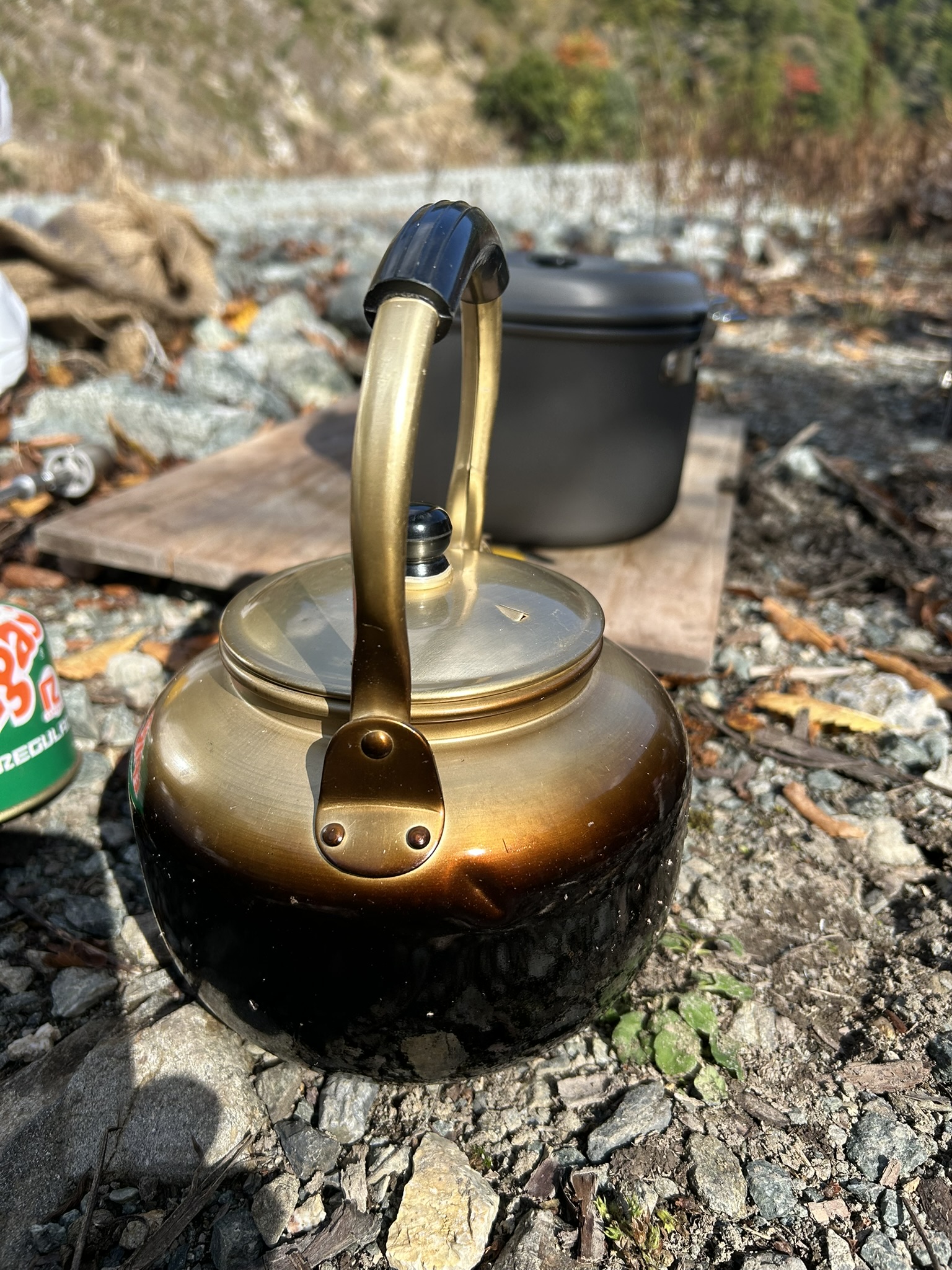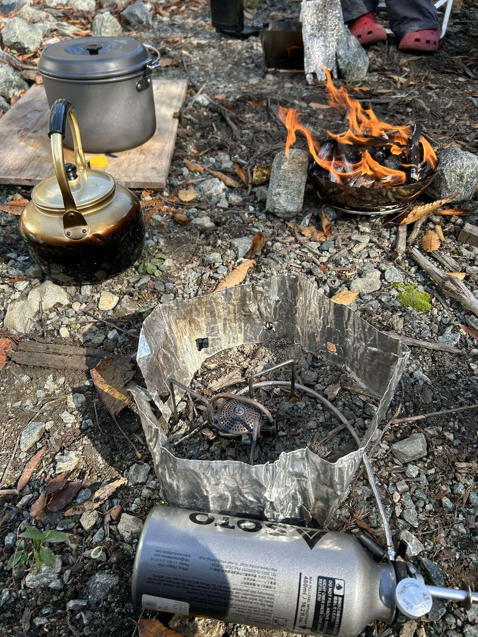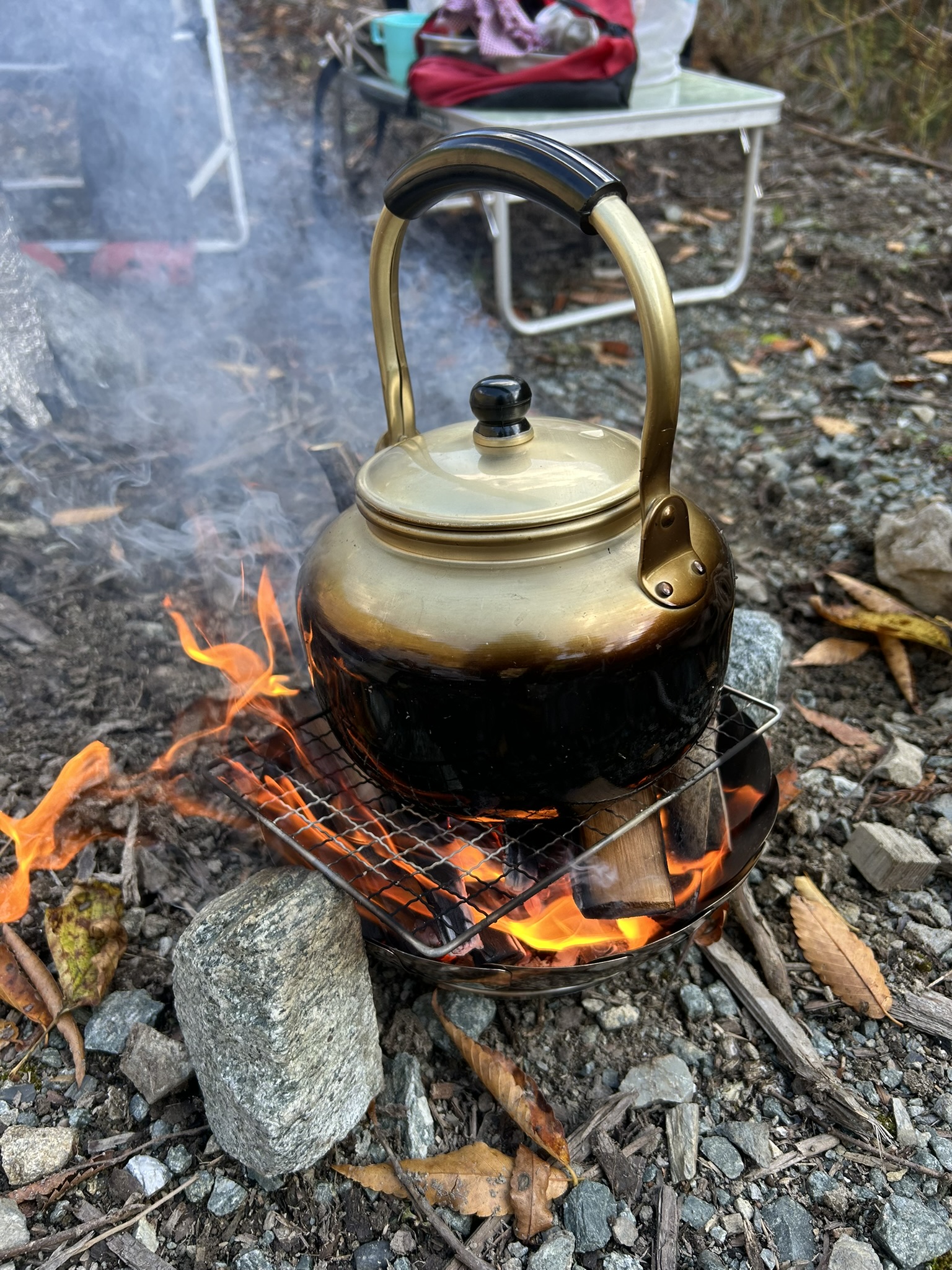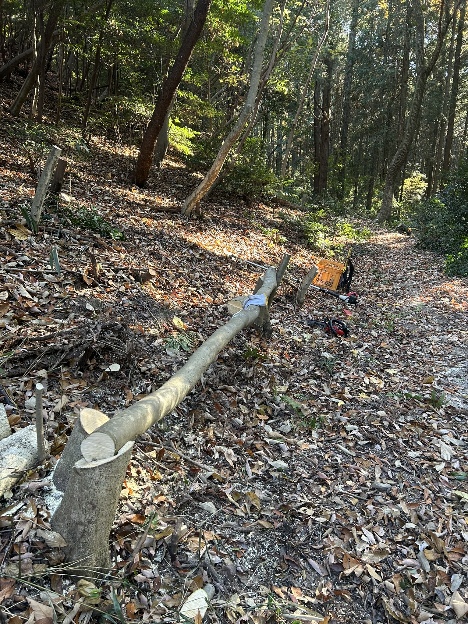 投稿日: 2025年11月16日秋の一日 先日の山行で、下山時にズルズル急坂が怖くて 今回そこにザイルを張る為にでかけた。 しかし、給水所までの所で工事中、道路を直している。 通れそうにないので引き返し、今回は未使用の焚火台、2つをテストして終わり。
