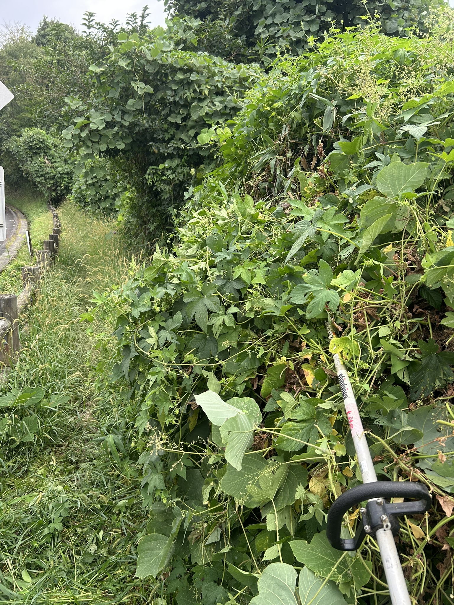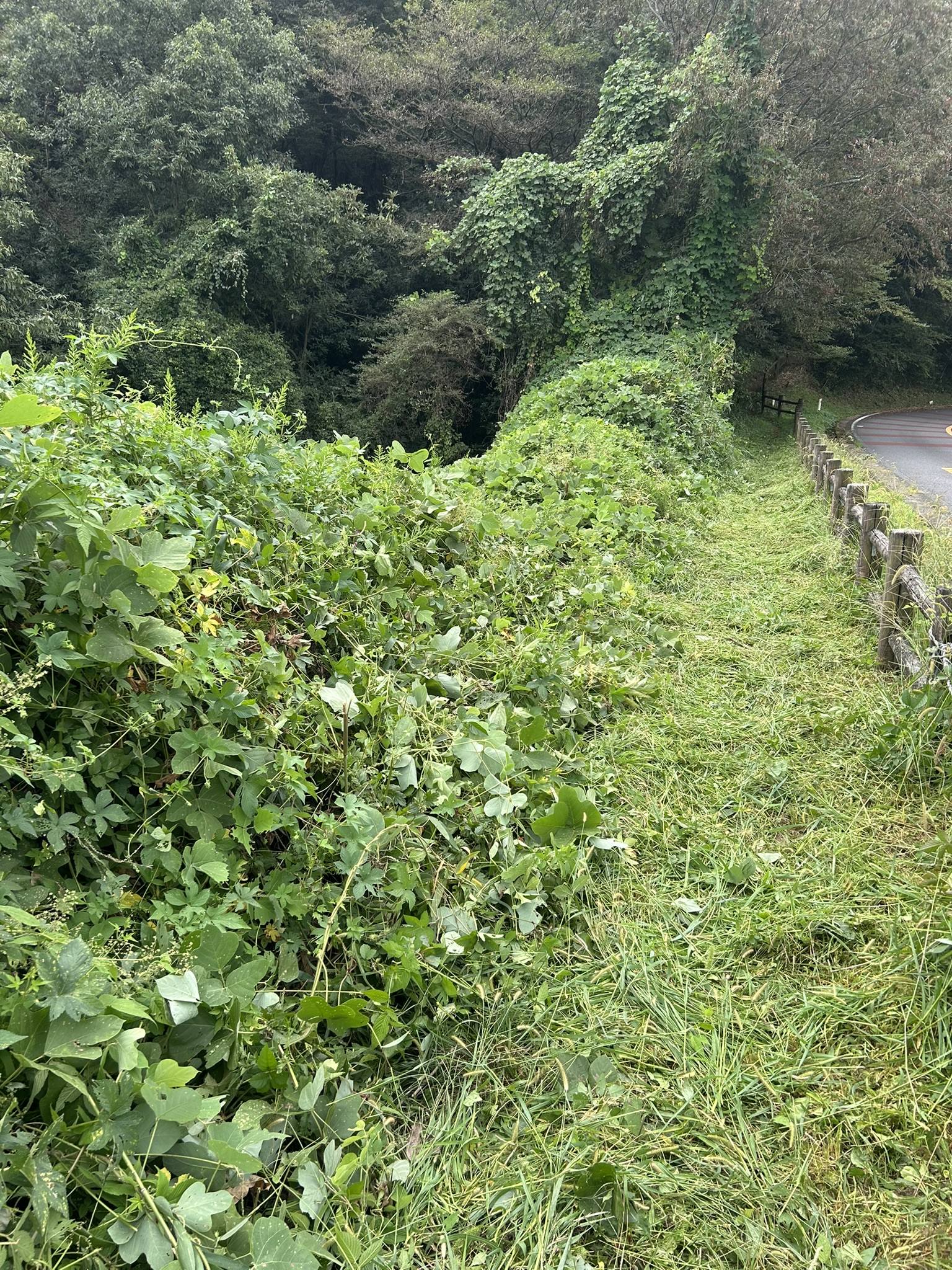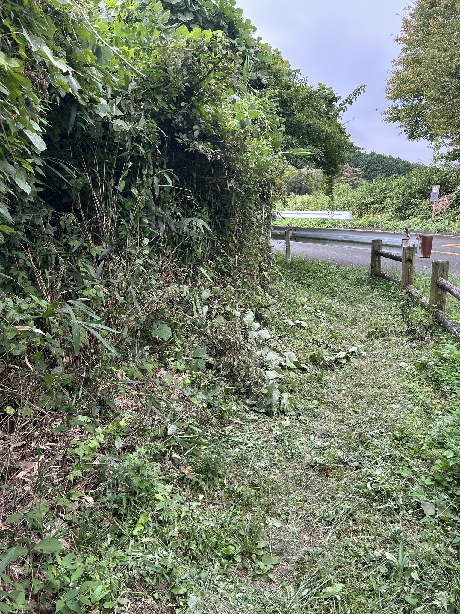 ここの駐車場に軽トラを停めて池の周りの草刈りに行ってきた